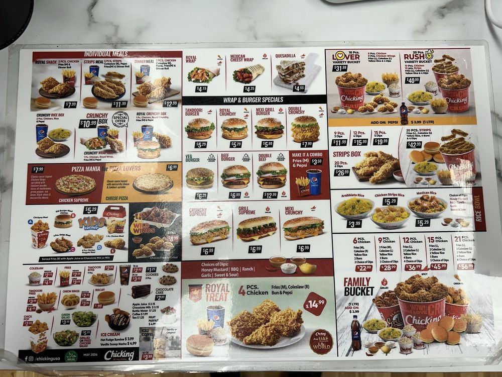 Located at 66 Waverley Dr, Chicking offers a diverse menu featuring everything from crispy fried chicken to tantalizing rice bowls. Signature dishes include the Royal Snack, boasting two pieces of chicken, crispy fries, and a bun for just $9.59. The Strips Meal and Dinner Meal deliver hearty portions with coleslaw and a refreshing Pepsi, both priced at $14.71.